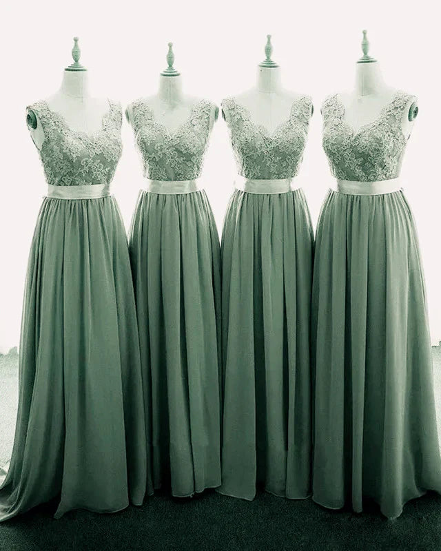 Roycebridal Lace Sage Green Bridesmaid Dresses Boho V-neck Straps Appliques