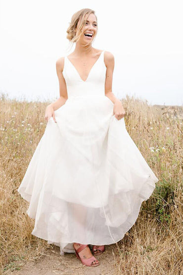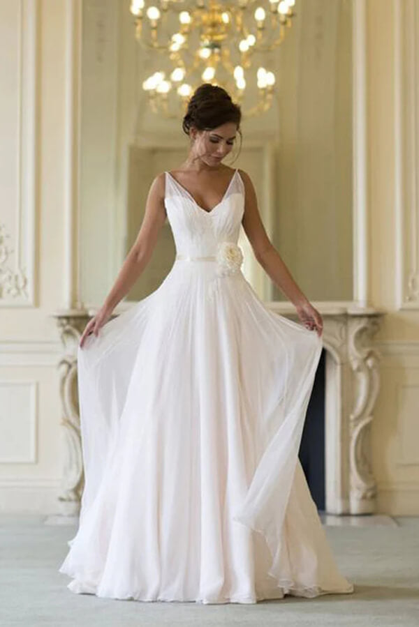 Roycebridal Simple Chiffon A-line V-neck Sleeveless Floor Length Beach Wedding Dresses, MW800
