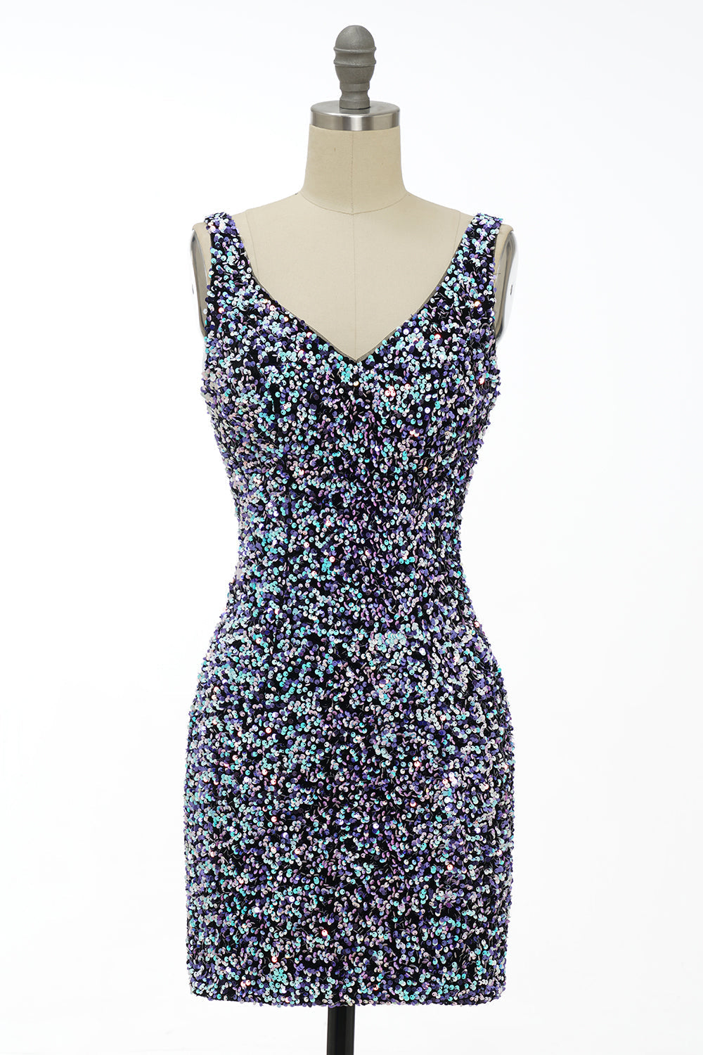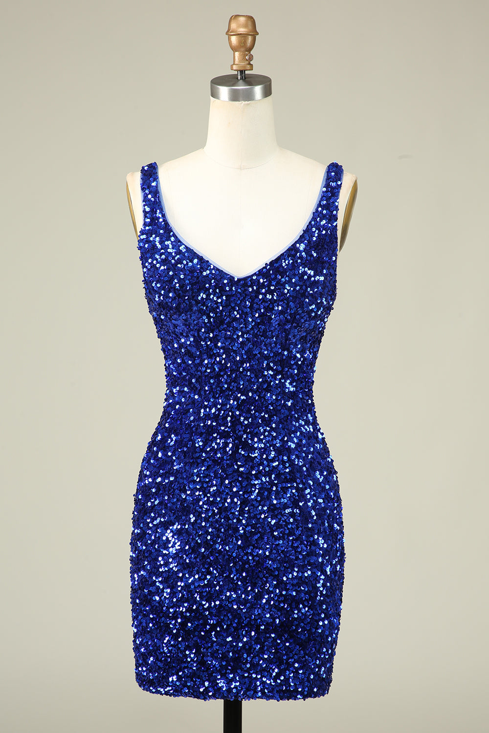Classy Royal Blue Sheath V Neck Sequin Fitted Short Homecoming Dress