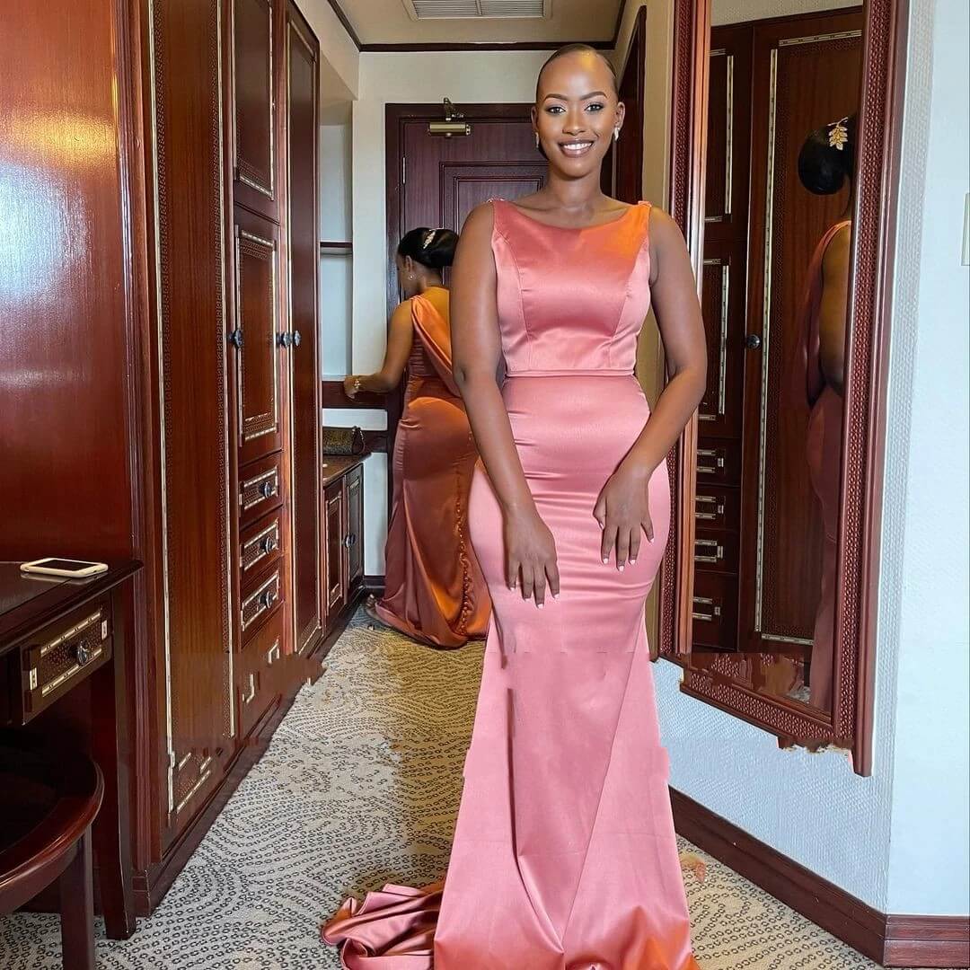 Roycebridal Long Mermaid Pink Bridesmaid Dresses Satin Sweetheart Wedding Party Dress