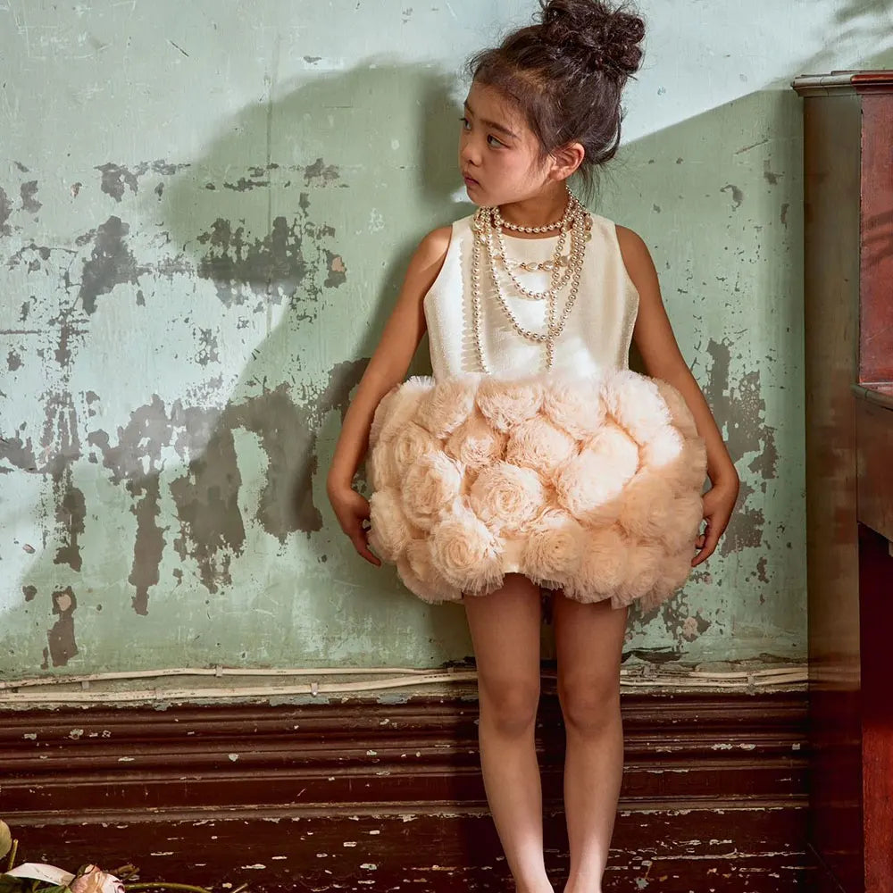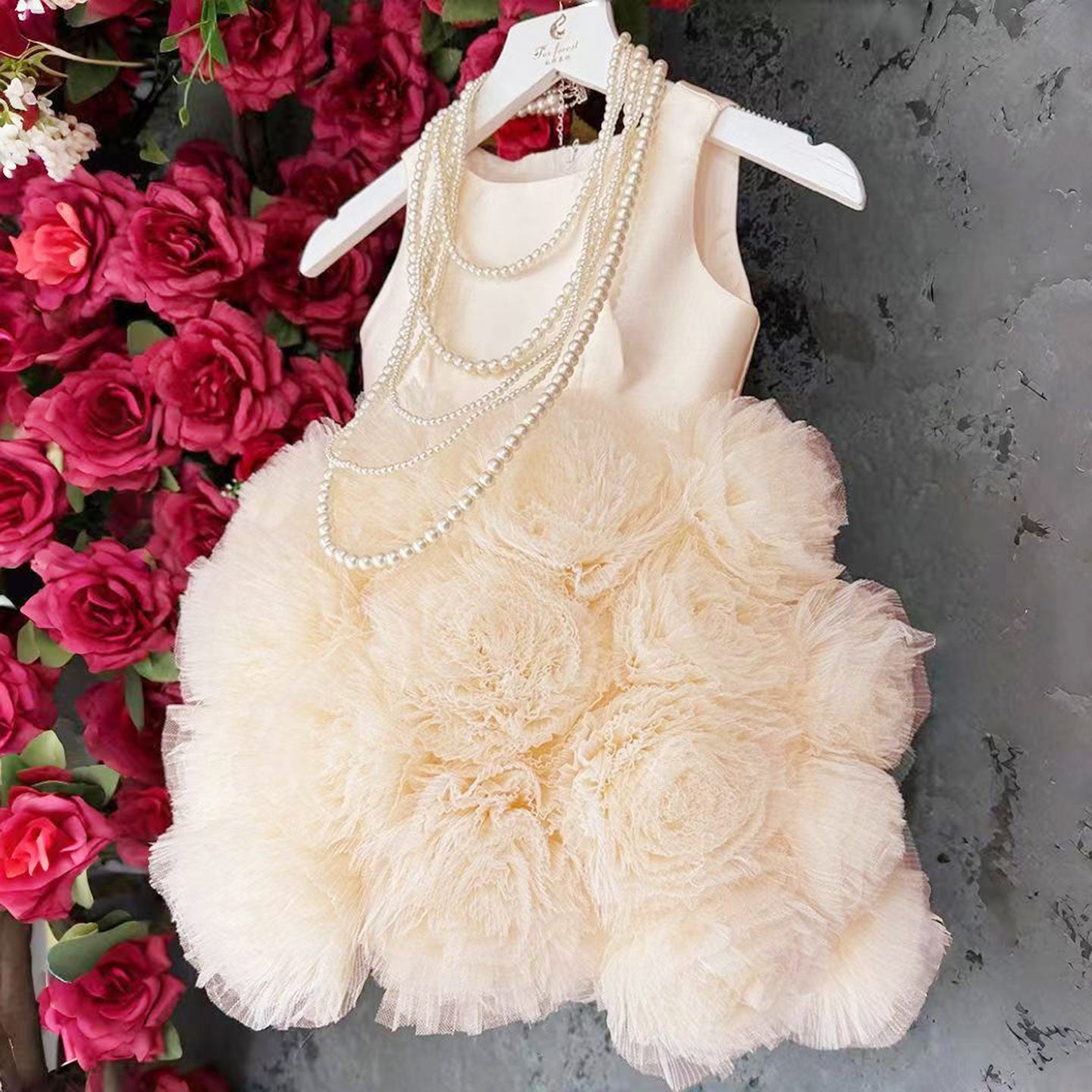 Roycebridal Mini Dubai Champagne Flower Girl Dresses Satin Handmade Flowers Baby Kids Birthday Wedding Party Gown Pageant J105