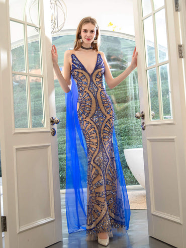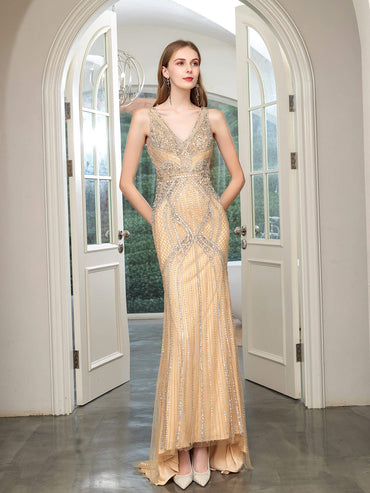 Roycebridal Mermaid V-neck Beaded Luxurious Fashion Formal Evening Dresses Sleeveless Floor Length