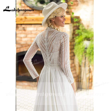 Roycebridal Long Sleeve Lace Chiffon Boho A Line Wedding Dresses