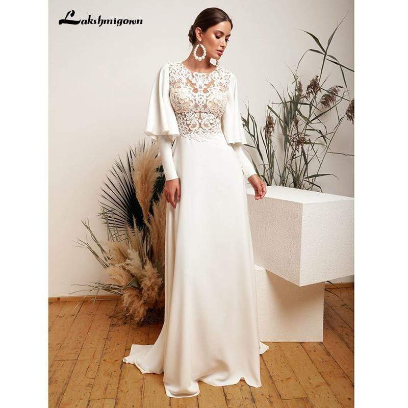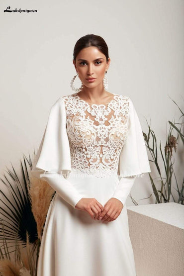 Roycebridal Long sleeves lace Wedding Dress Beach Simple Floor Length