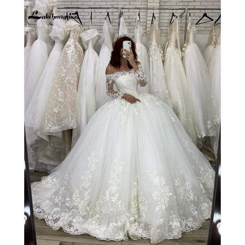 Roycebridal Long sleeve wedding dresses Appliques Lace Muslim