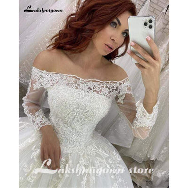Luxurious White Lace Tulle Off the shoulder Long Sleeves