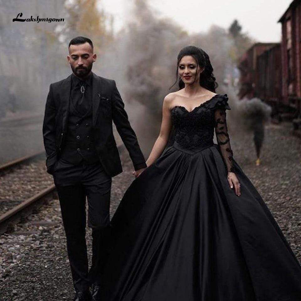 Roycebridal Lakshmigown Gothic Black Wedding Dress Sexy Bridal Dress Lace=
