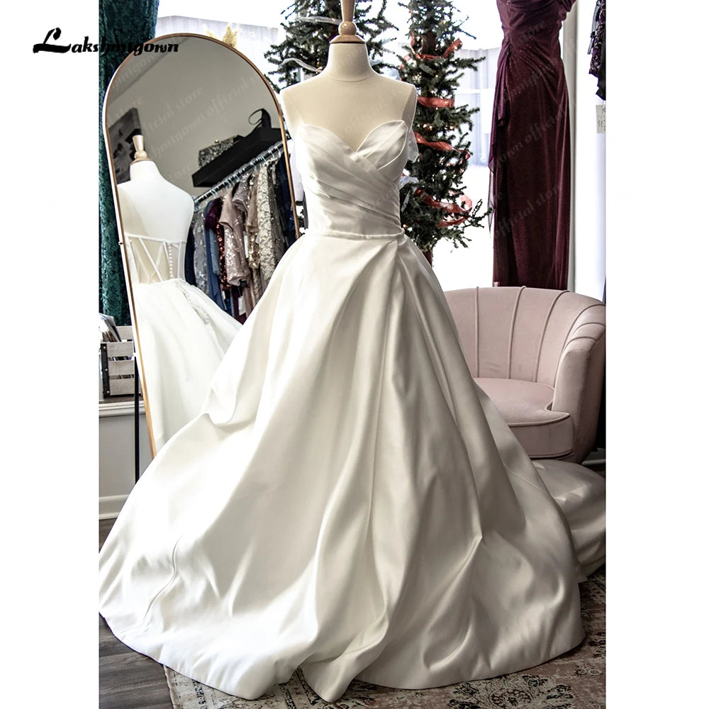 Roycebridal Princess Bridal Satin Wedding Dresses For Women with Dectachable Skirt Sweetheart Pleat Bridal Gowns