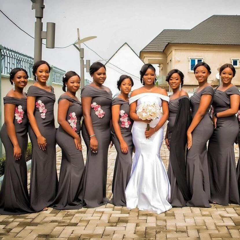 • Mermaid Dark Gray Bridesmaid Dresses Cap Shoulder Pleat Wedding Party Dress