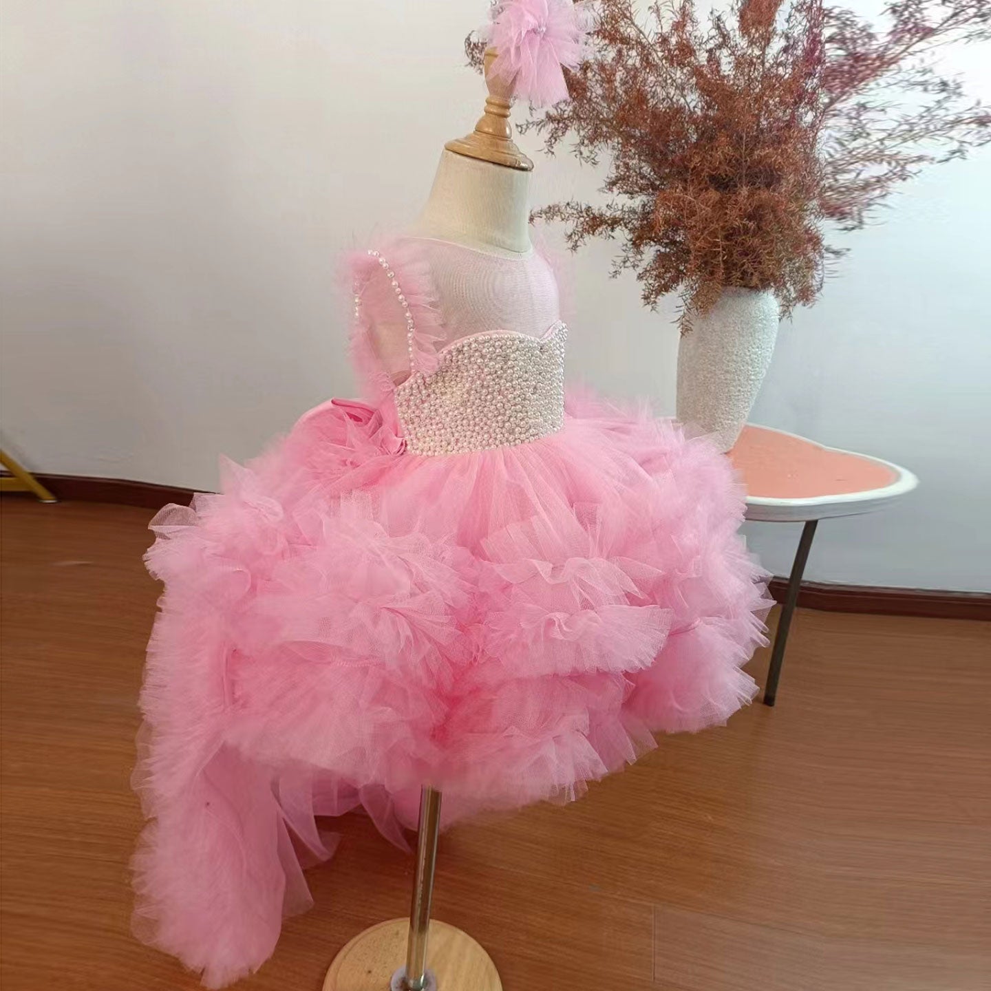 • Roycebridal Luxury Pink Baby Flower Girl Dress Feathers Princess Kids Ball Gown for Birthday Wedding Party Holy Communion J144