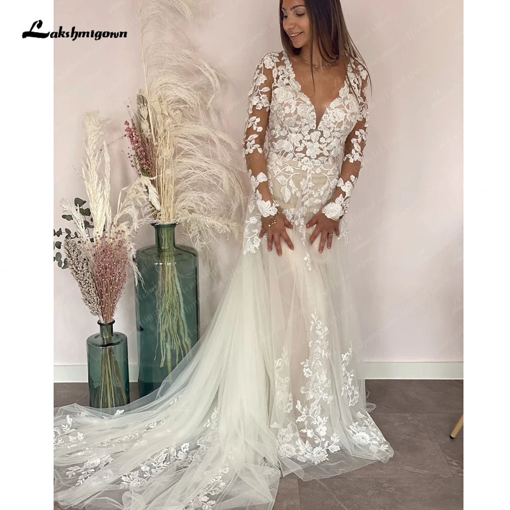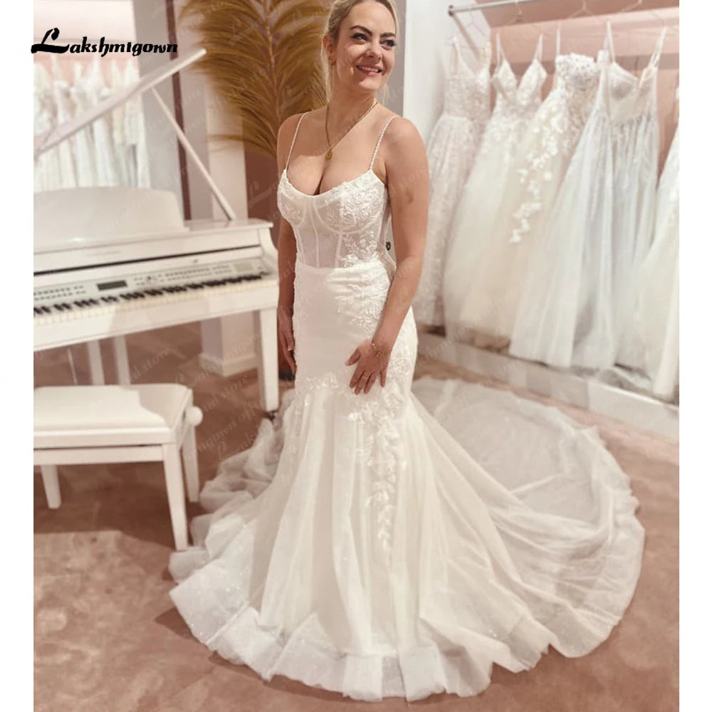 • Lakshmigown Spaghetti Straps Lace Wedding Dress Vestidos Civil Mermaid Boho Bridal Gowns Sweep Train 2023 vestidos para mujer