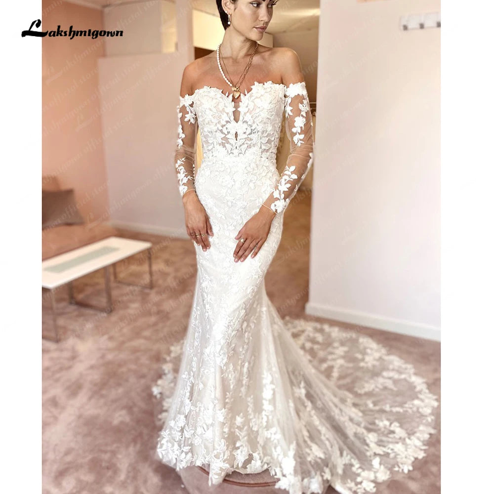 • Roycebridal Long Sleeves Mermaid Boho Wedding Dress 2025 Off Shoulder Court Train Bridal Gowns vestidos para mujer