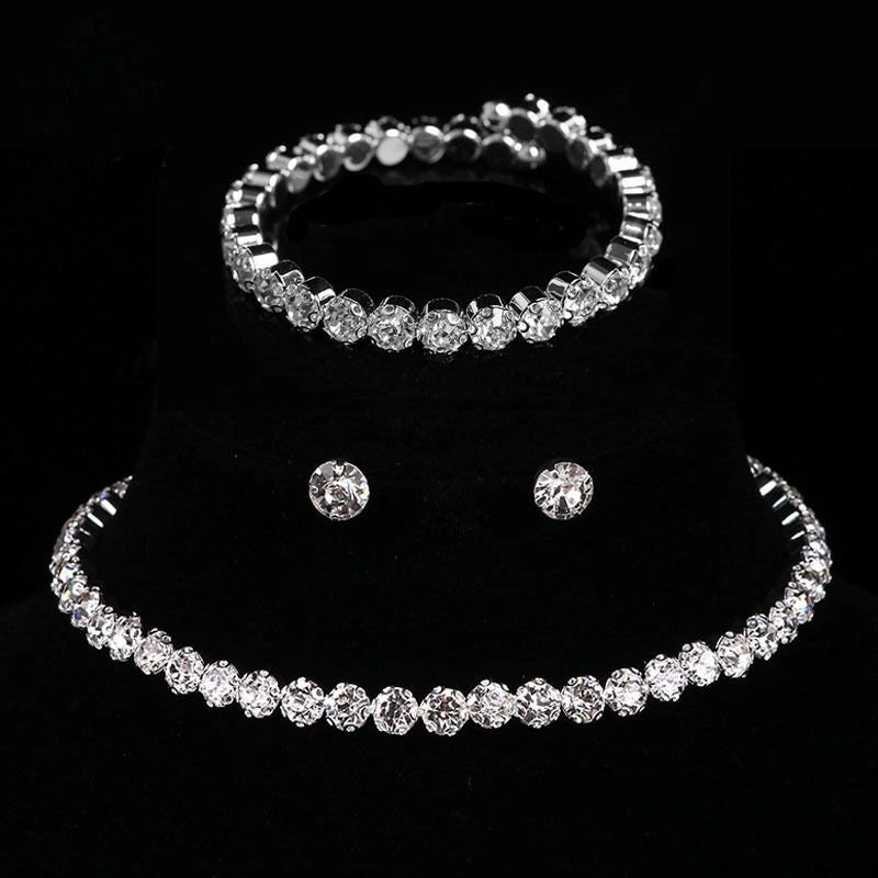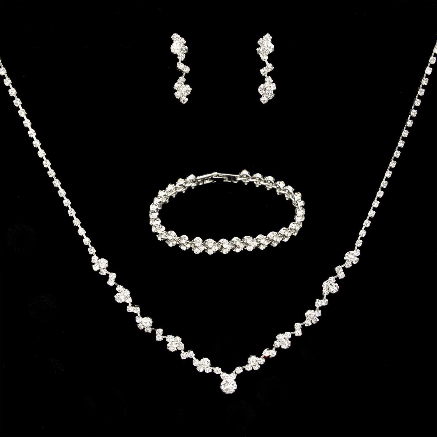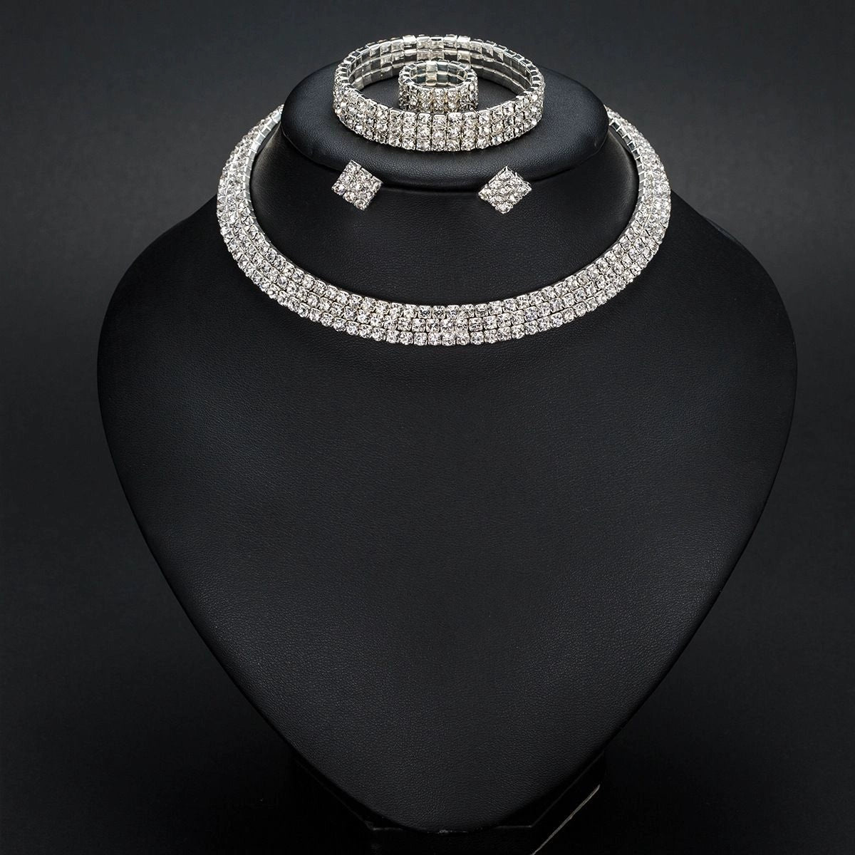 • Roycebridal Full Diamond Rhinestone Necklace Set