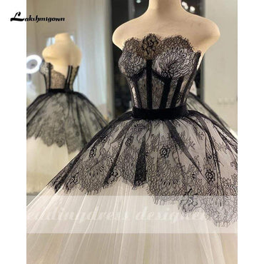 Roycebridal Lakshimigown Boho Spitze Brautkleider Kurz Trägerlos Schwarz
