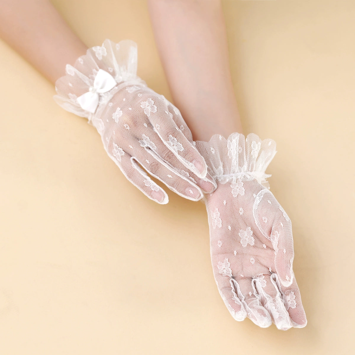 Roycebridal Gothic Hochzeitsaccessoires Handschuhe Organza Blumen Schwarze Braut Puffärmel