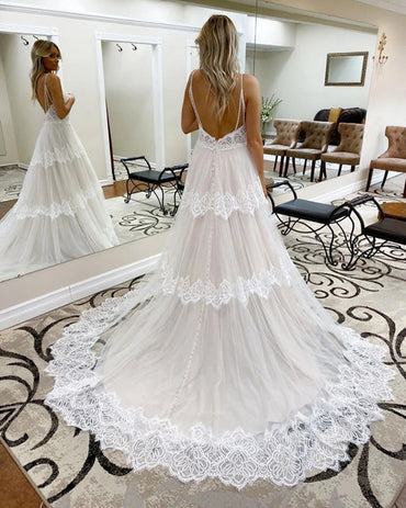 Roycebridal Tüll Offener Rücken Spaghettiträger Brautkleider Romantische Brautkleider,MW502