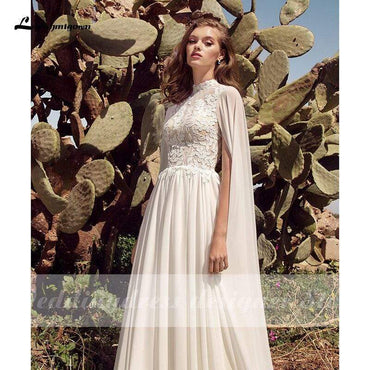 Roycebridal Schlichte Strand-Boho-Brautkleider mit Cape, offenem Rücken und Spitze