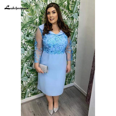 Flügelärmeln Wadenlang Chiffon Spitze Kleider für die Brautmutter