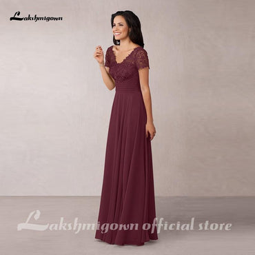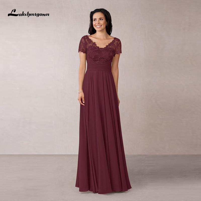 Burgunderrote, anmutige Chiffon-Spitzenkleider für die Brautmutter