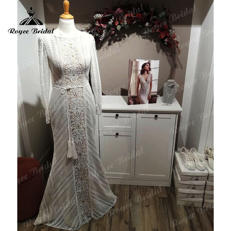 Roycebridal Roycebridal Boho Meerjungfrau/Trompete Hochzeit Kleid 2025 Langarm Spitze Open Back Bohemian vestido de fiesta de boda Strand braut