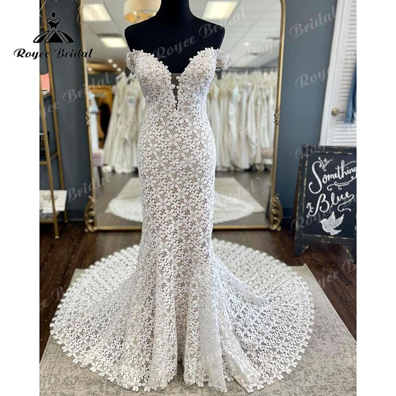 Roycebridal Weg Von der Schulter Spitze Rückenfreies Meerjungfrau/Trompete Boho Hochzeit Kleid 2025 Vestido Hochzeit Kleider robe soirée mariage
