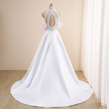 Markenname: Lakshmigown Aktuelle Bilder: Ja Ausschnitt: V-Ausschnitt Ärmellänge (cm): Ärmellos Stoff für Brautkleider: weicher Satin Zug: Hofzug Herkunft: CN (Herkunft)...
