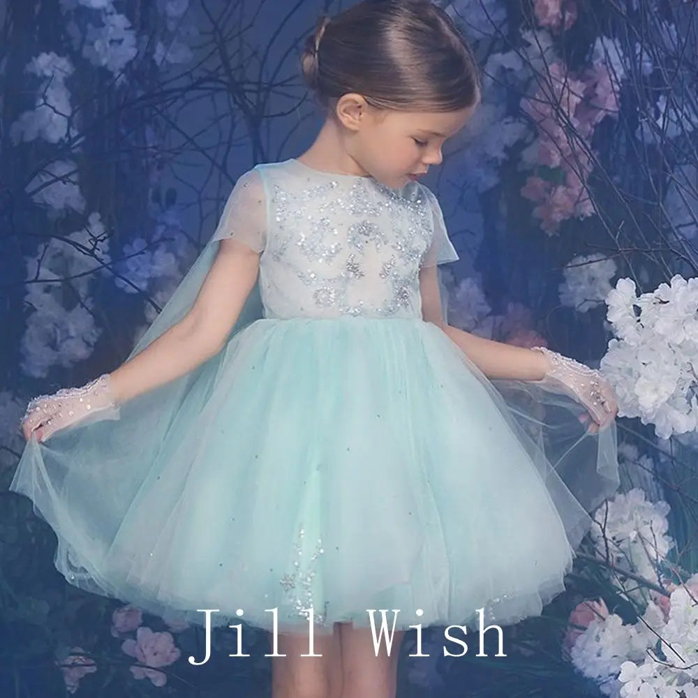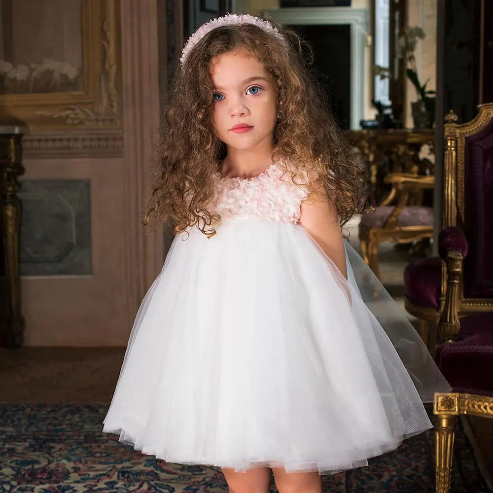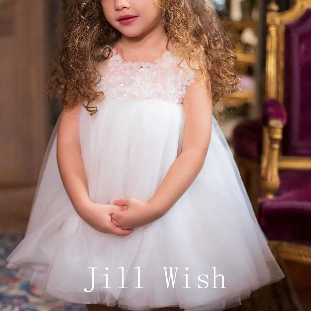 Kleiden Sie Ihre kleine Prinzessin in ein luxuriöses und elegantes weißes Mädchenkleid von Jill Wish Luxury Dubai. Mit wunderschönen Blumen...