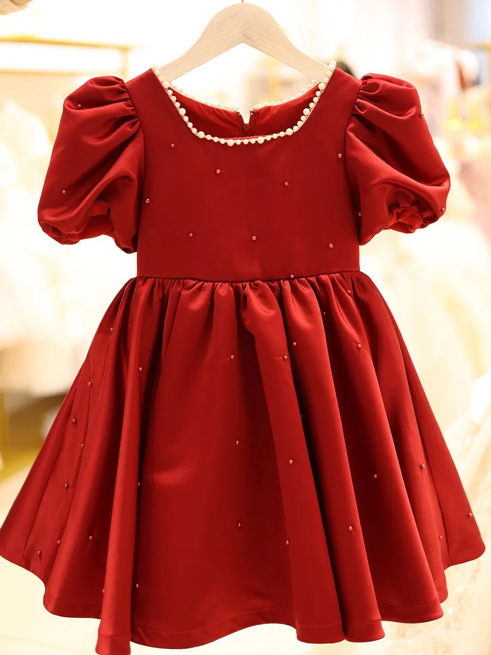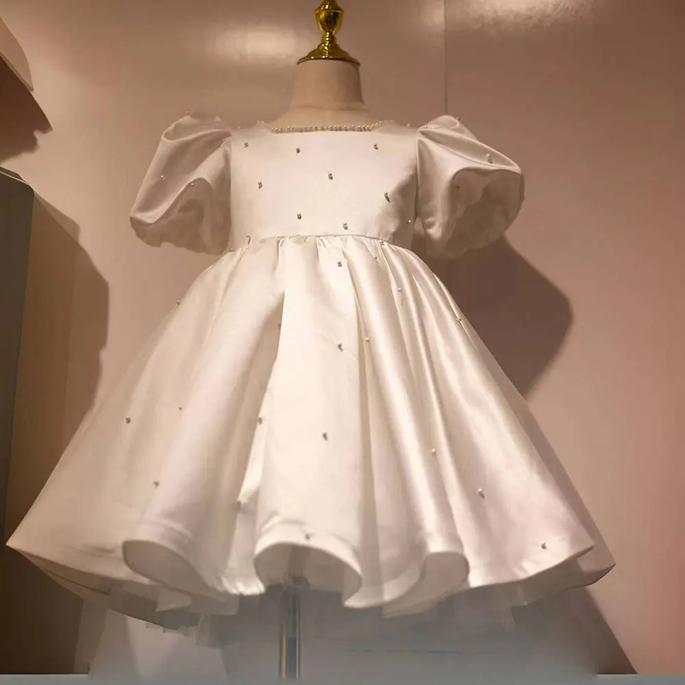 Roycebridal Weißes Blumenmädchenkleid mit Puffärmeln und Perlen, formelles Abendkleid für Kinder, Hochzeit, Geburtstag, Abendessen, Party, Festzug J093