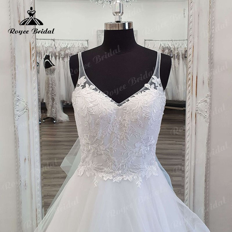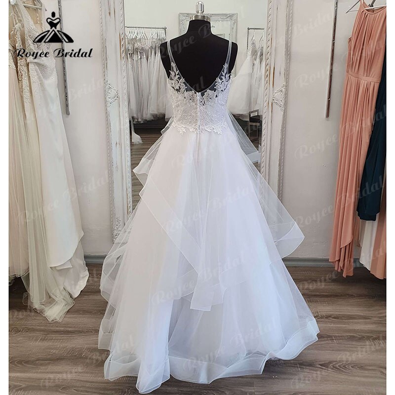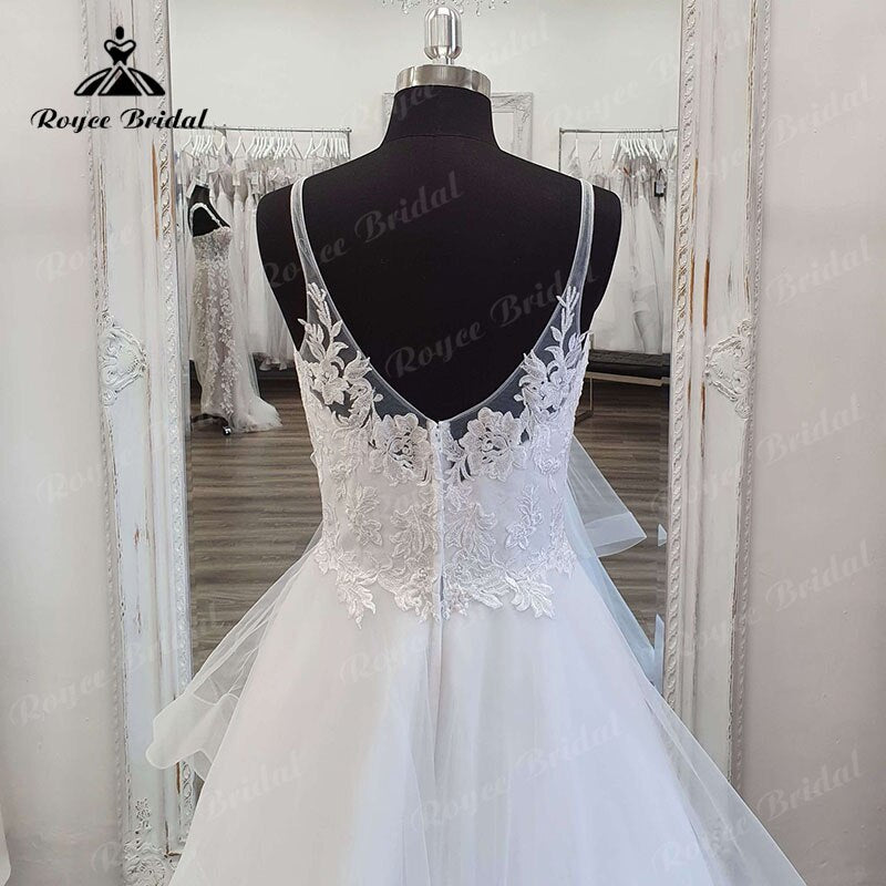 Roycebridal A-Linie Boho Ärmellos V-Ausschnitt Spitzenapplikationen Rückenfreies Brautkleid Prinzessin 2025 Vestido Zivil Braut Strand Boho Brautkleider