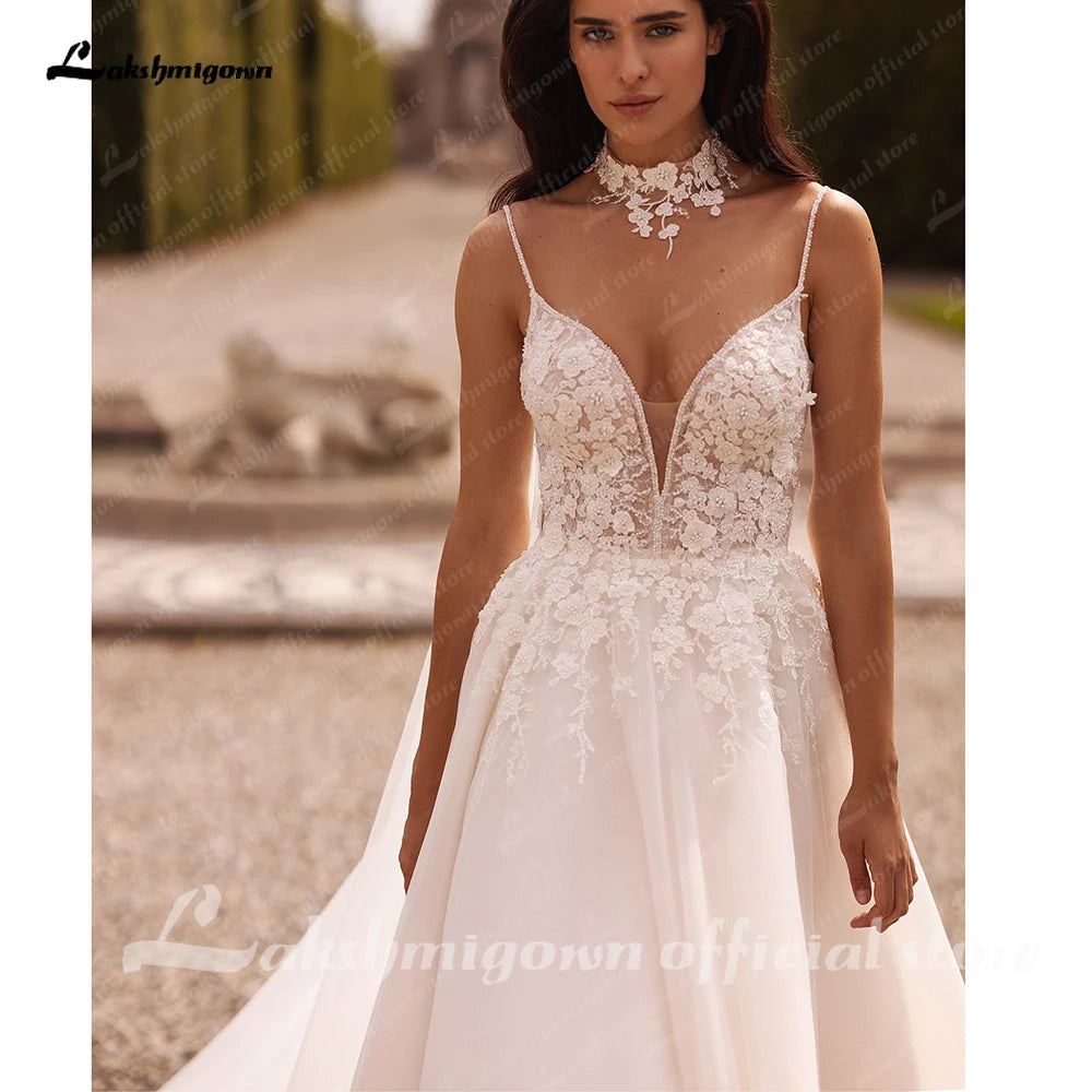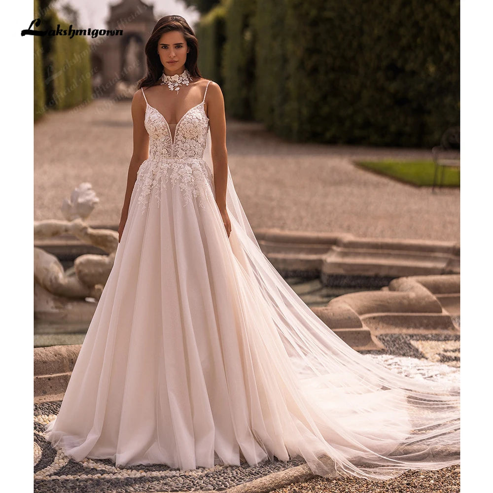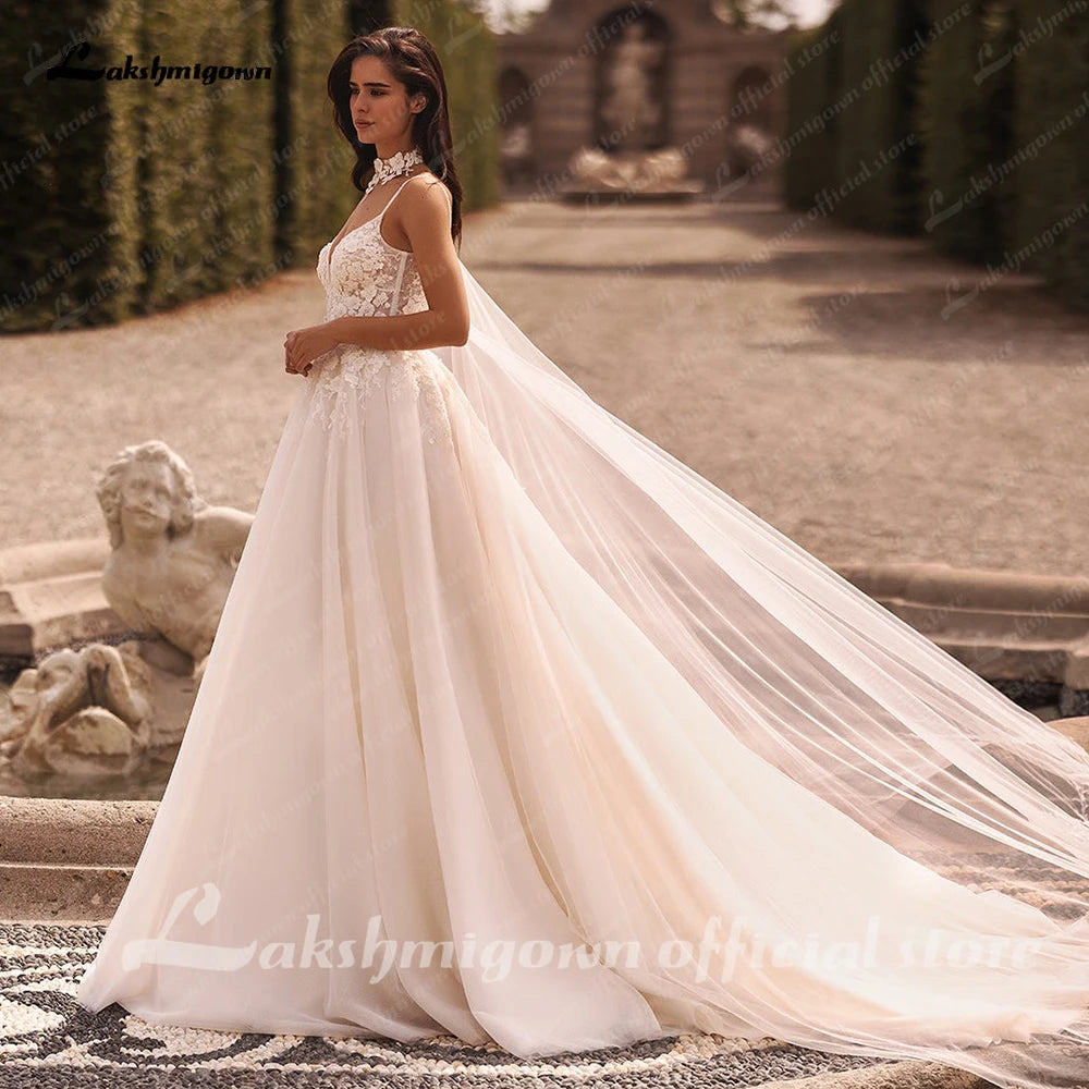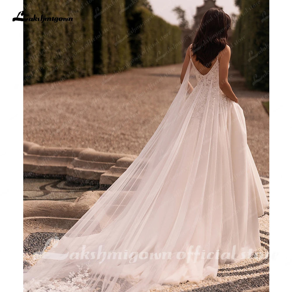 Roycebridal Damen A-Linie Spitze Brautkleider mit Cape Roben Femmes Chic Braut Boho Strand Brautkleider Spaghettiträger