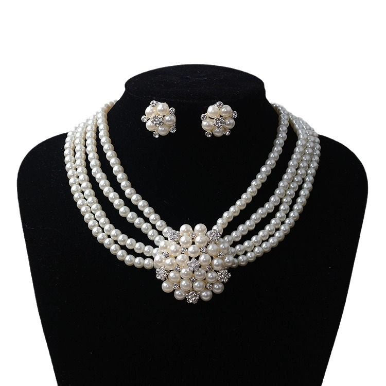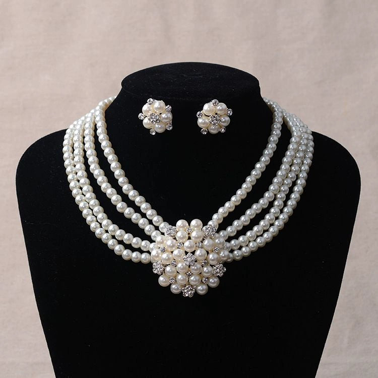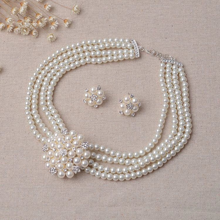 Roycebridal Perlenblumen-Hochzeitsschmuckset mit Halskette und Ohrringen, Brautschmuck für die Hochzeit