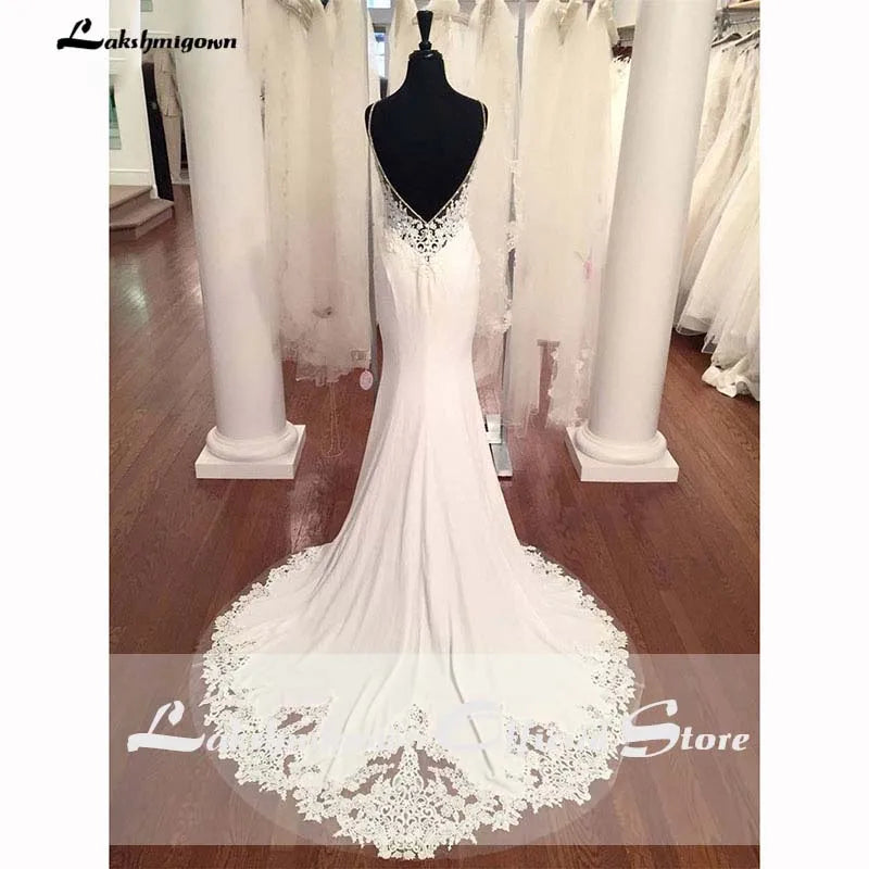Roycebridal V-Ausschnitt Meerjungfrau Brautkleider Spitze Appliques Boho Brautkleid Backless Sexy Robe de Mariee Vestido de Casamento