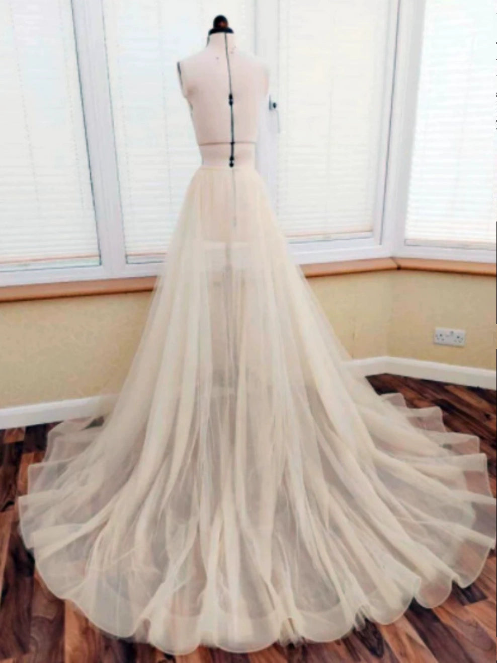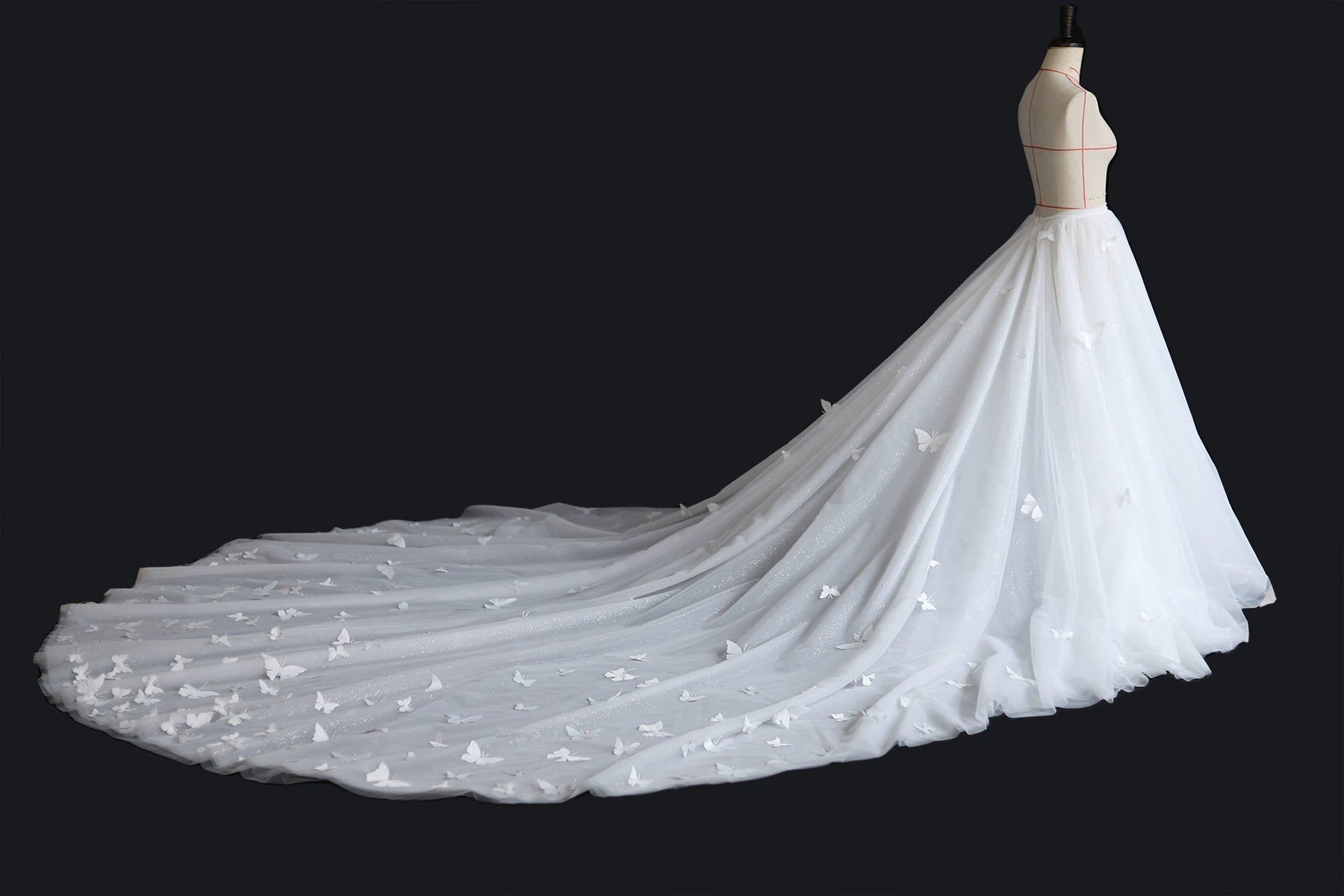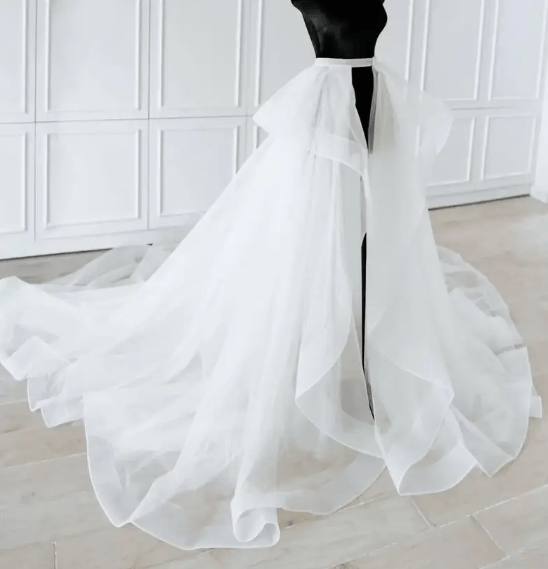 Jupe en maille blanche à traîne amovible Roycebridal avec longue traîne courte devant et long dos$ 86.00 USD$ 86.00 USD$ 86.00 USD
