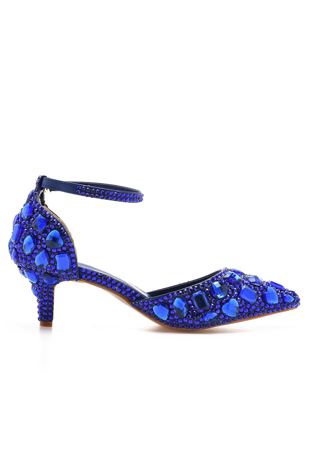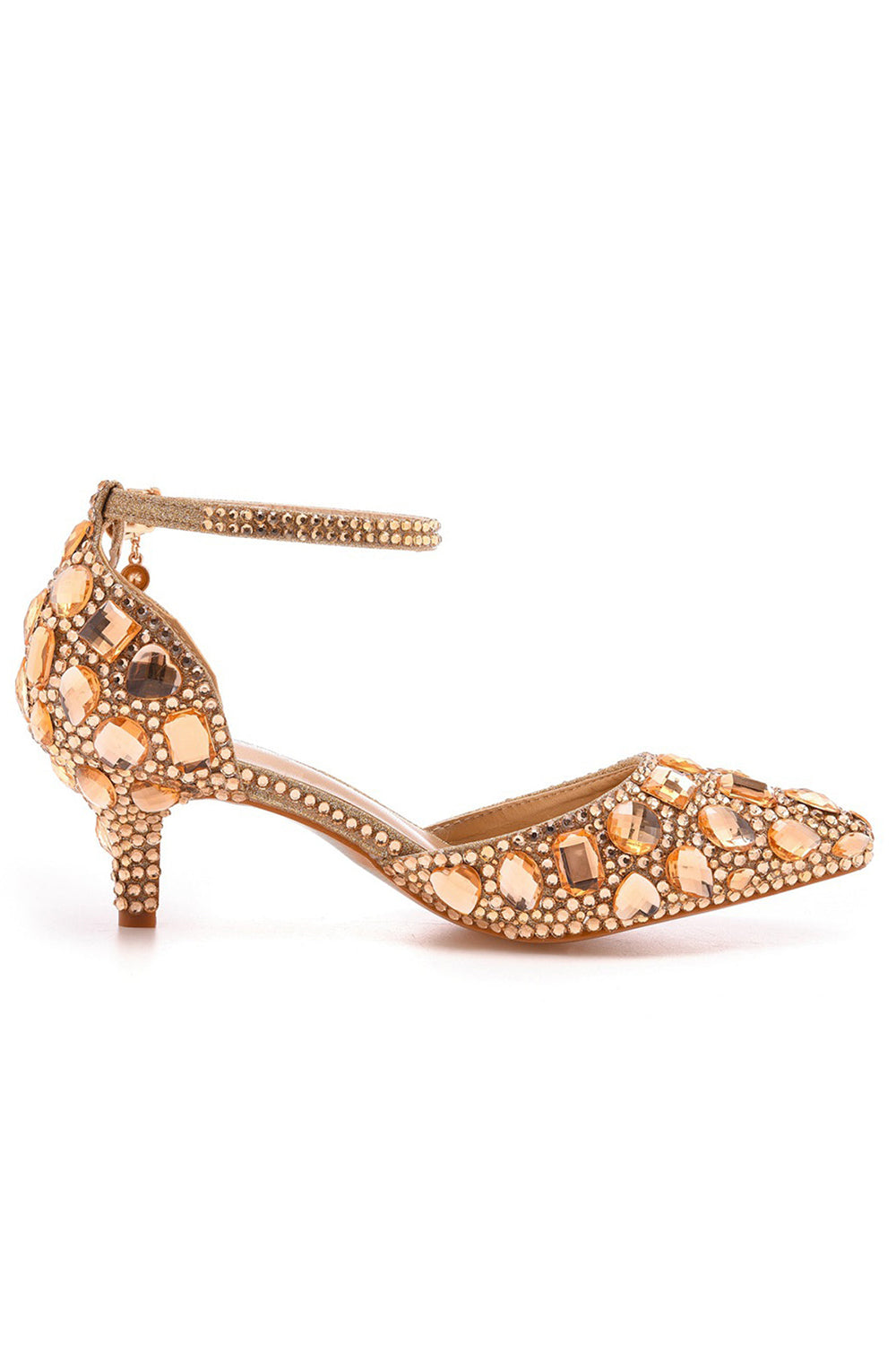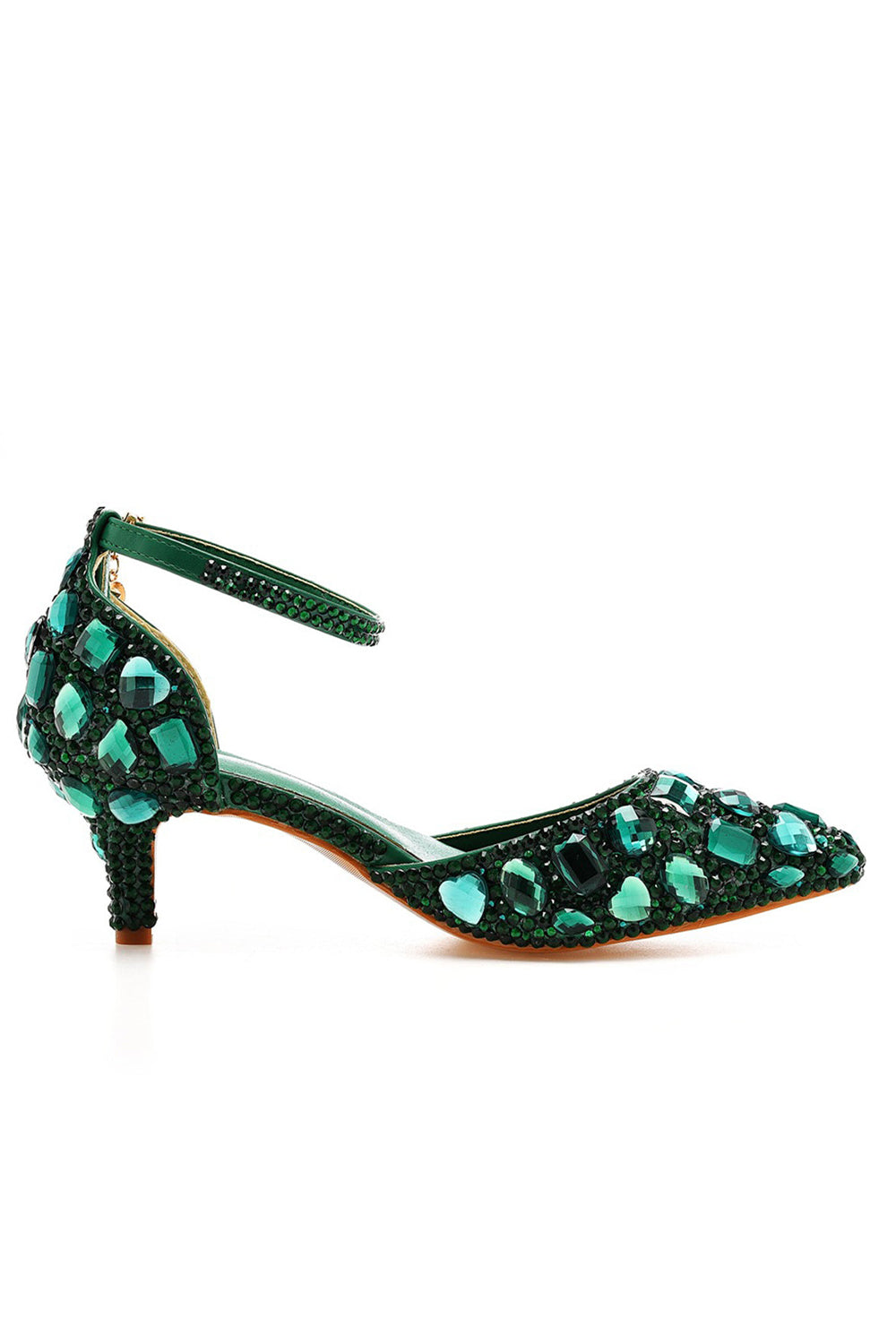 Escarpins à bout pointu et bride cheville en cristal et diamants