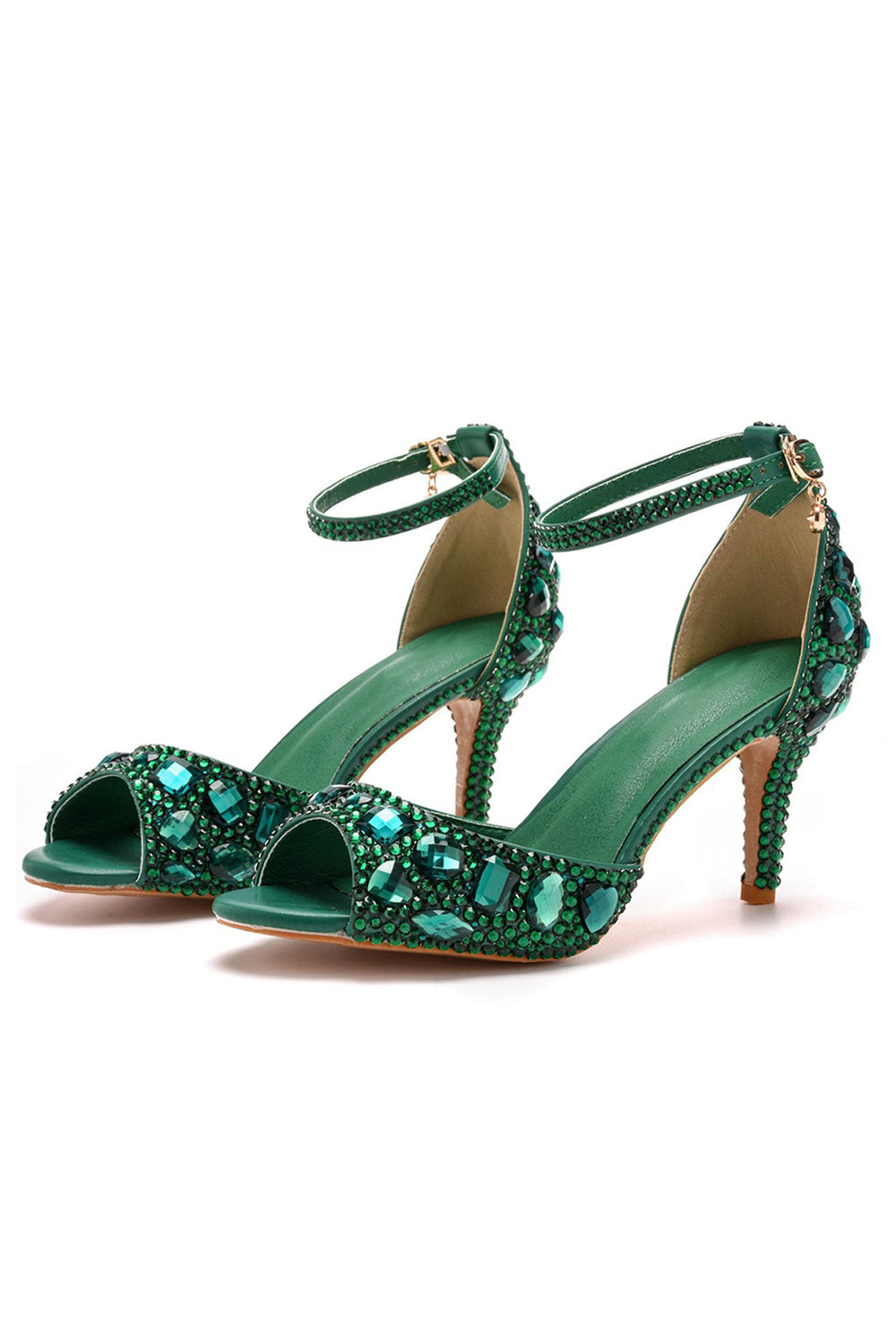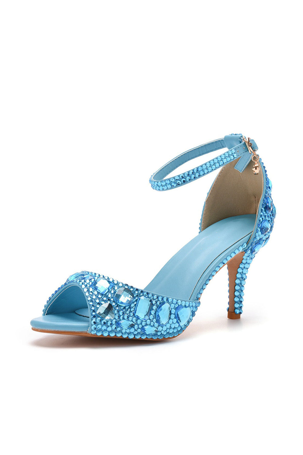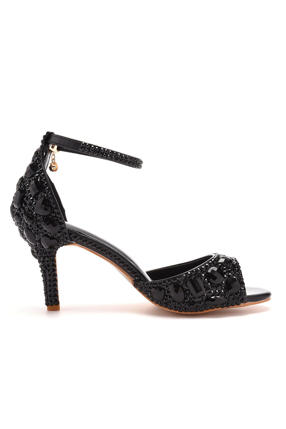 Sandales à talons hauts et bride à la cheville avec strass et bout ouvert