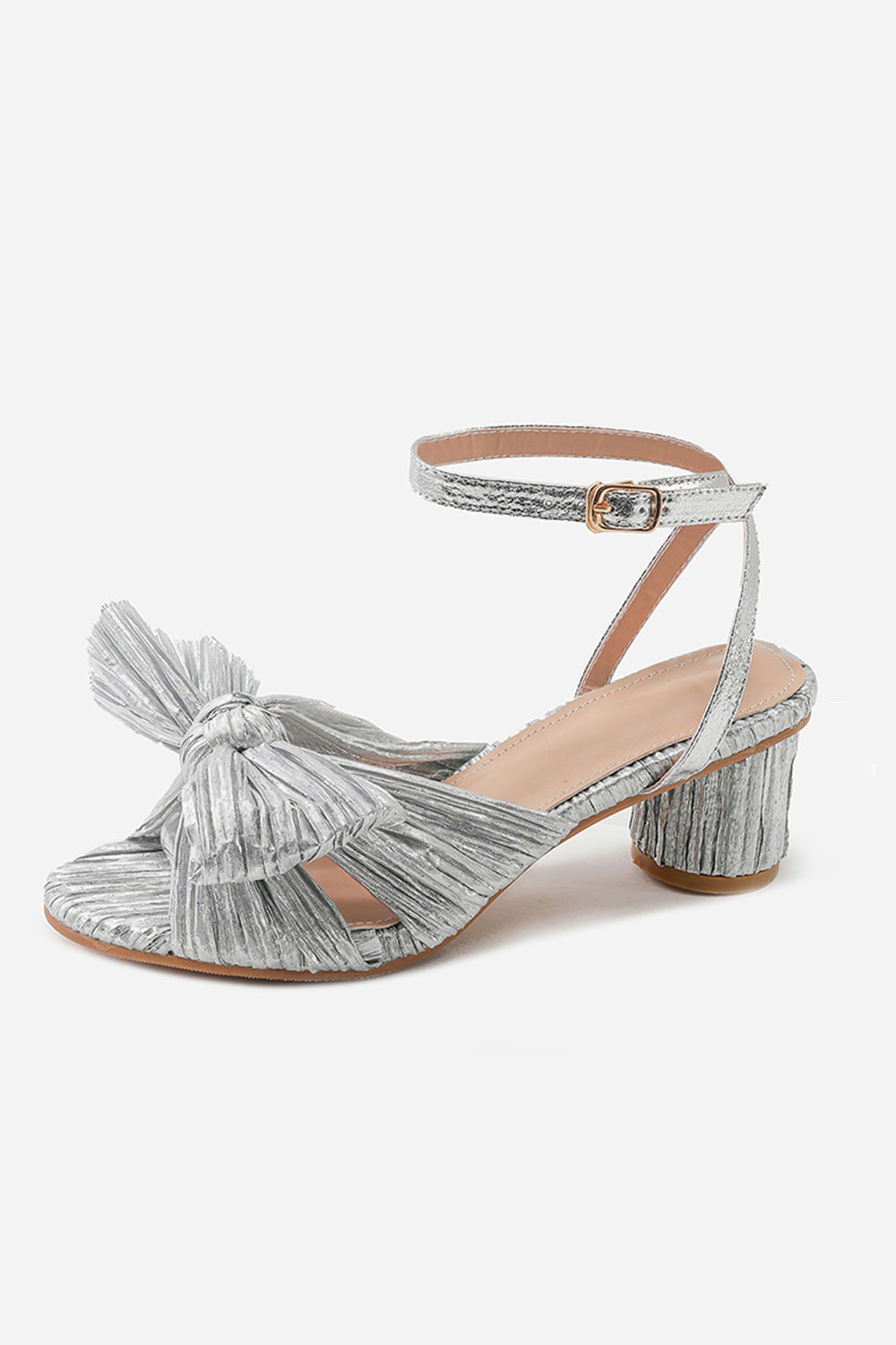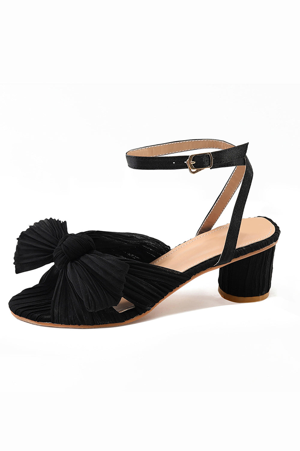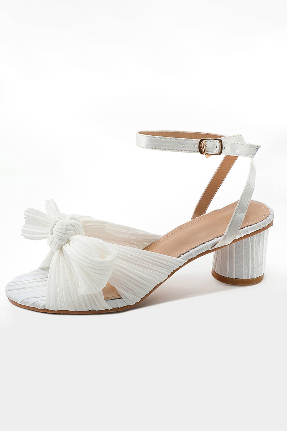 Chaussures d'extérieur Roycebridal en satin à bout ouvert et talon épais avec boucle et nœud papillon