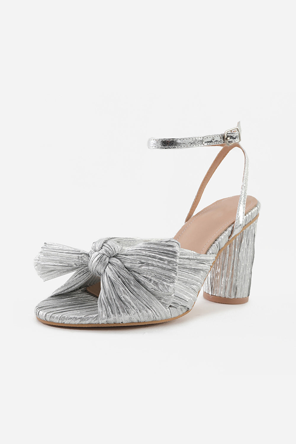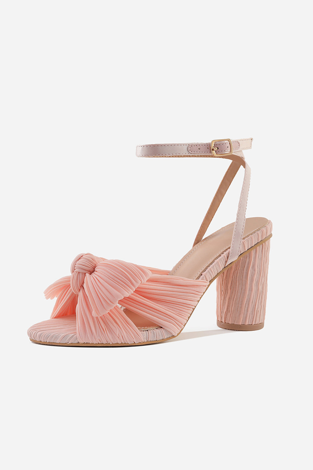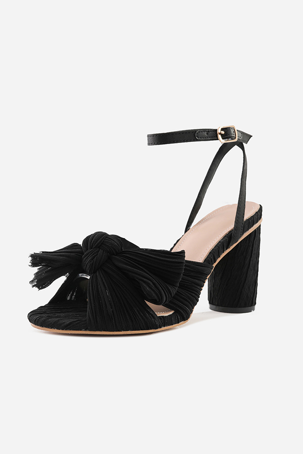 Chaussures d'extérieur Roycebridal en satin à bout ouvert et talon épais avec boucle et nœud papillon