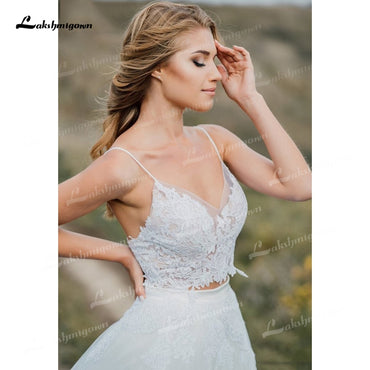 Robe de mariée bohème à bretelles spaghetti Roycebridal Lakshmigown 2021, col en V, dos nu, en dentelle, en tulle, pour la plage