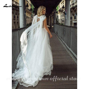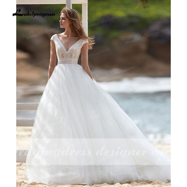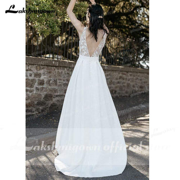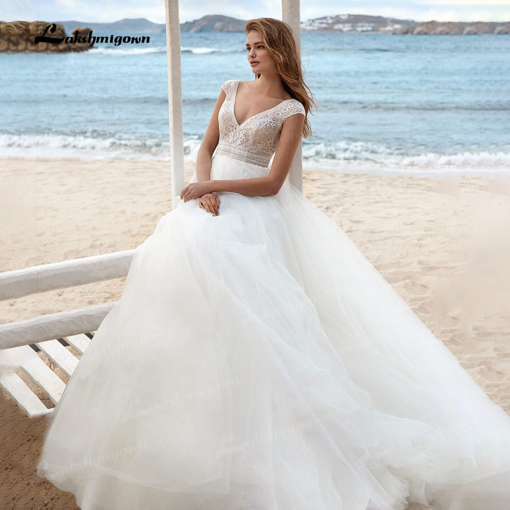 Robe de mariée de plage sexy style bohème Roycebridal Lakshmigown 2021, robes Sukienka, robes de mariée trapèze, corsage en dentelle, décolleté plongeant et dos nu