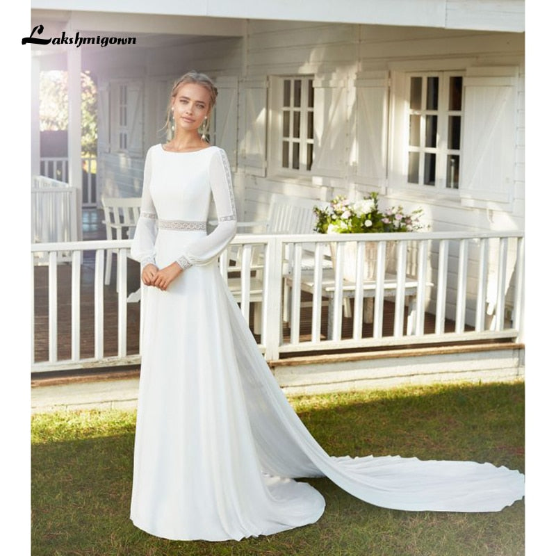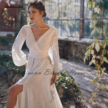 Robe de mariée bohème en mousseline de soie Roycebridal Lakshmigown 2024, manches longues, blanche ivoire, robe de mariée sexy de plage