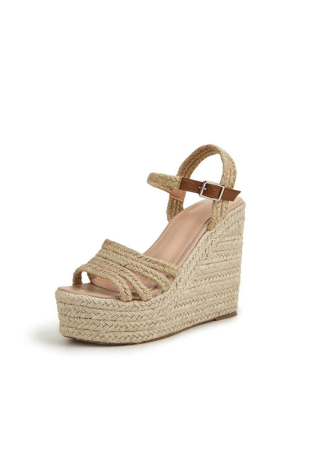 Chaussures d'extérieur à talon compensé et bout ouvert Roycebridal avec boucle et bride tressée