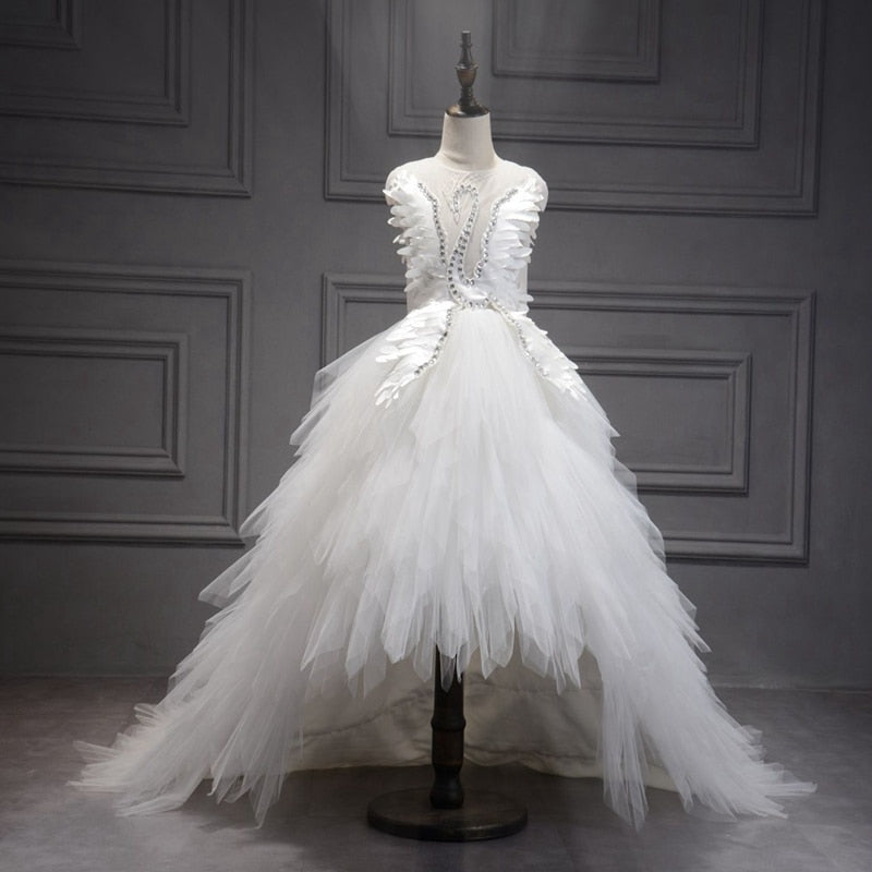 Robe de bal asymétrique en tulle et cristal pour fillette, robe de première communion