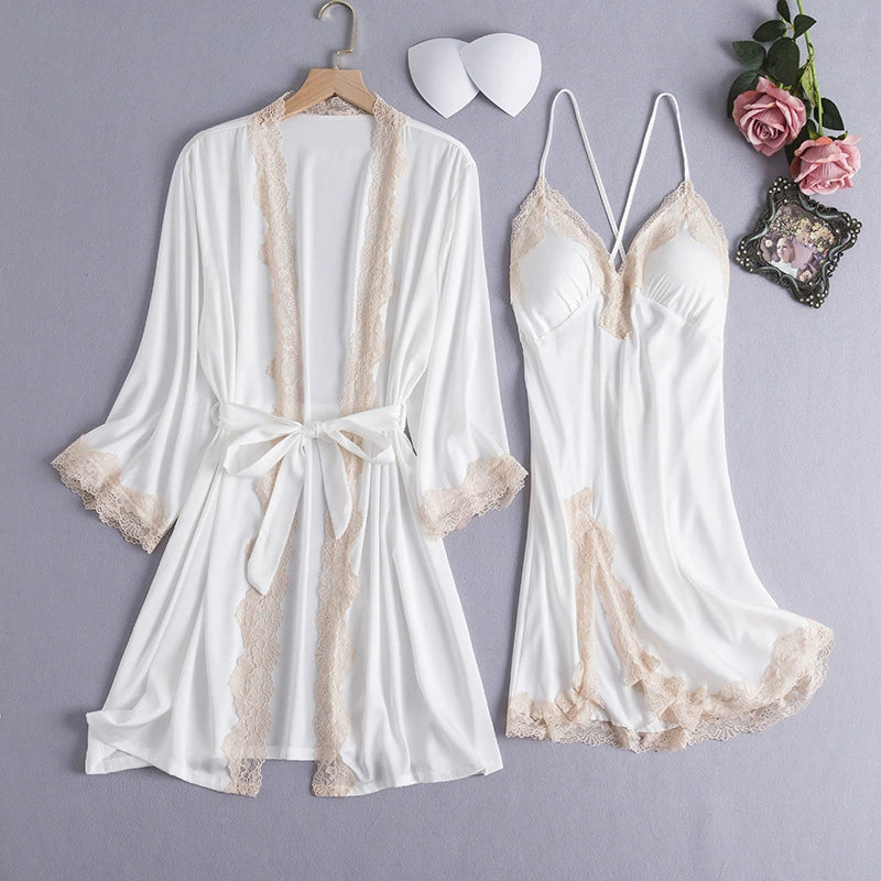 Chemise de nuit sexy deux pièces Roycebridal avec coussinet de poitrine