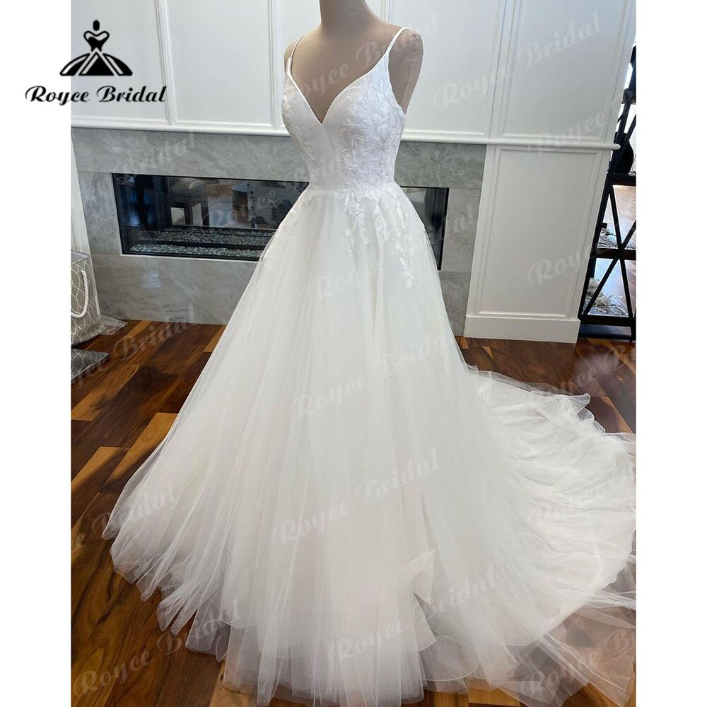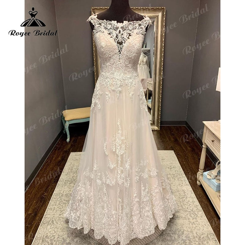 Roycebridal Robes De Mariage Superbe Grande Taille Col V Dentelle Appliques Dos Nu Champagne Robe De Mariée Vintage Robes Novia Robes De Mariée