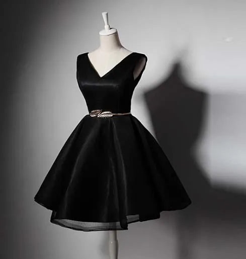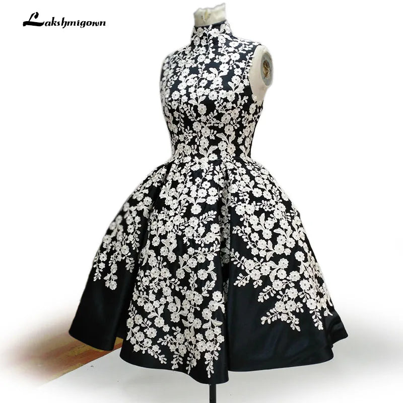 Robes de cocktail noires élégantes, courtes, en dentelle, avec appliques, en satin, sans manches, pour remise de diplôme
