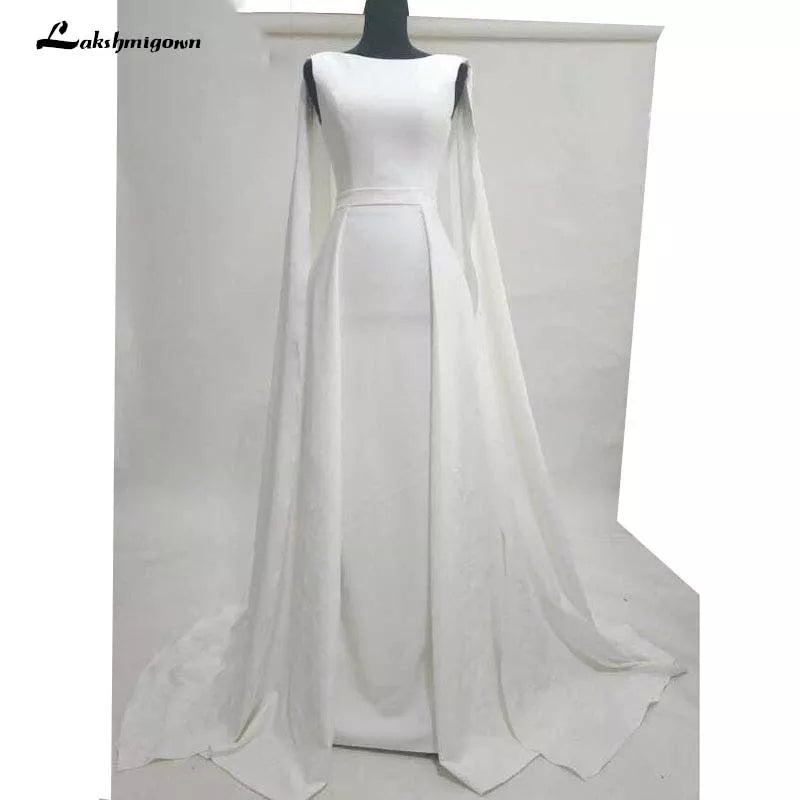Robes de soirée blanches pures Roycebridal bien typées avec cape Robes de célébrités en satin Outlayer Robes de tapis rouge