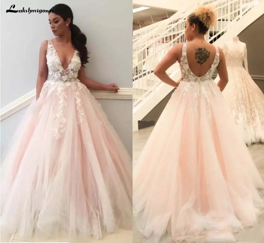 Robes de mariée de luxe en dentelle rose blush pour l'église 2025, dos nu, robes de mariée sexy style bohème, ligne A, longue traîne, Roycebridal