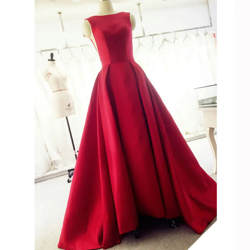 Robe de soirée longue rouge élégante en satin dos nu, tenue de bal, robe de soirée