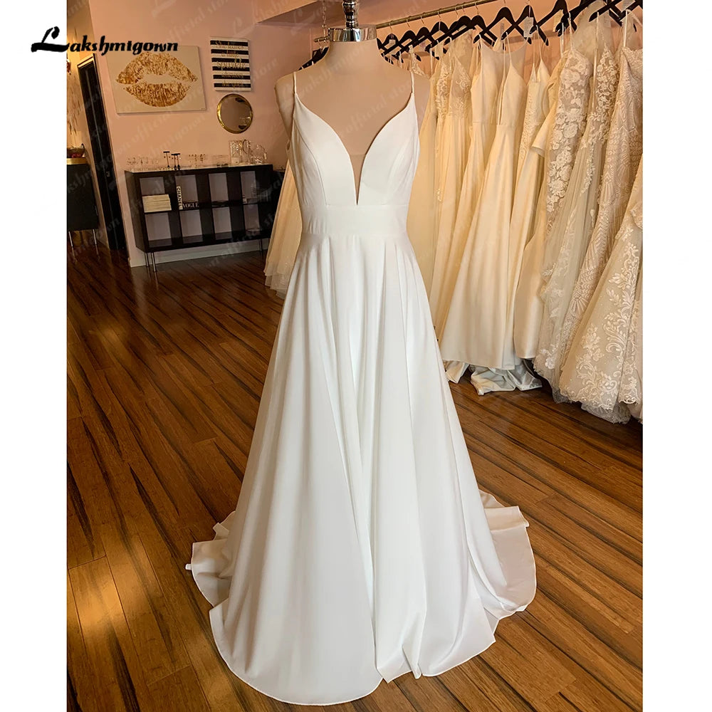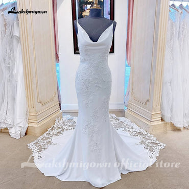 Roycebridal – Robe de mariée trapèze blanche simple, dos nu, robe de plage d’été en satin, robe de mariée sexy, 2025
