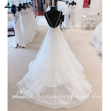 Robe de mariée blanche en organza, décolleté en cœur, robe de mariée de plage haute et basse Prix : 115,00...